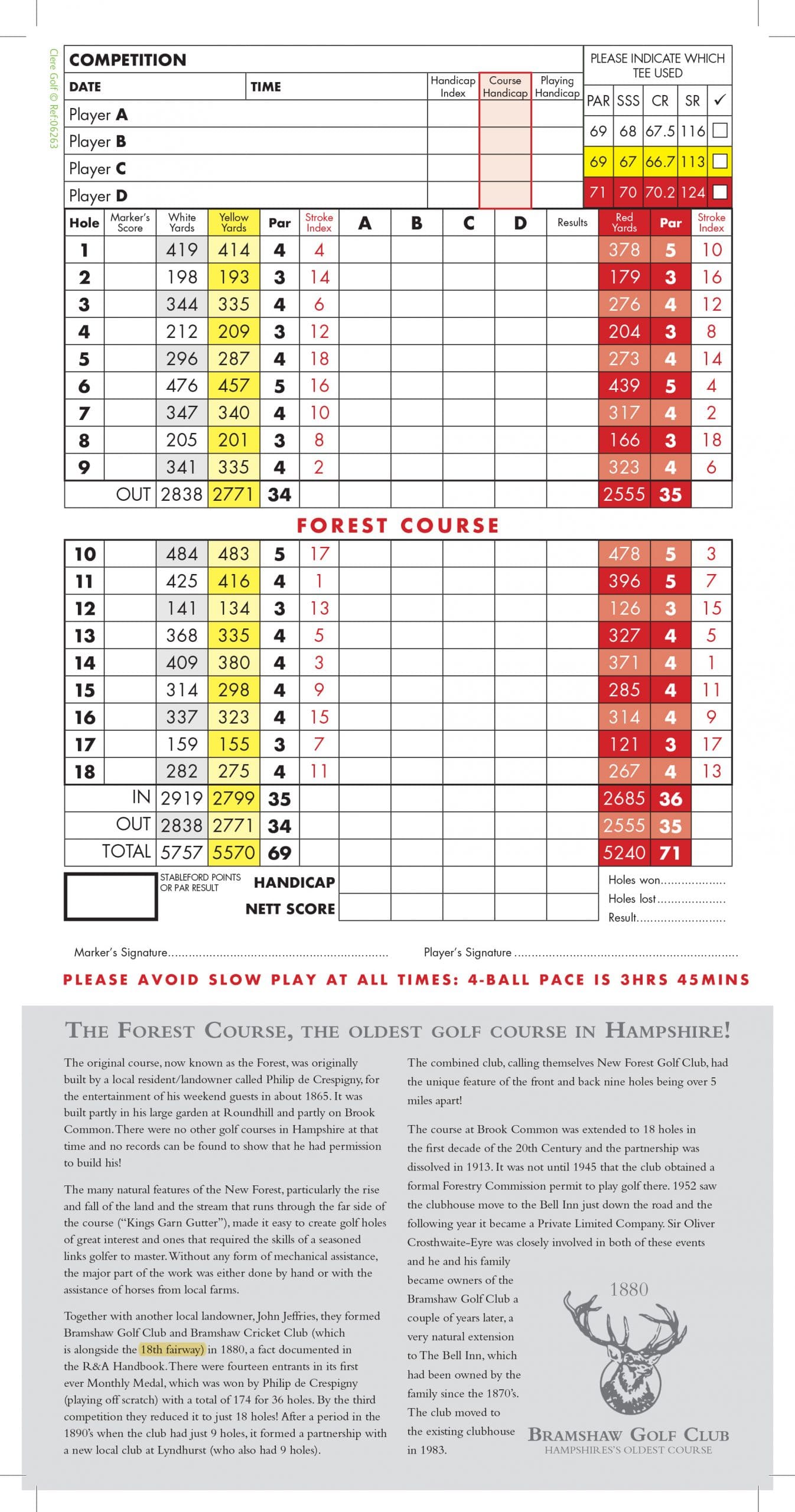 Bgc Scorecard Golf Club And Golf Course In Ringwood Hampshire With Available Memberships And Visitor Offers On Green Fees Tee Times Open Competitions Society Days